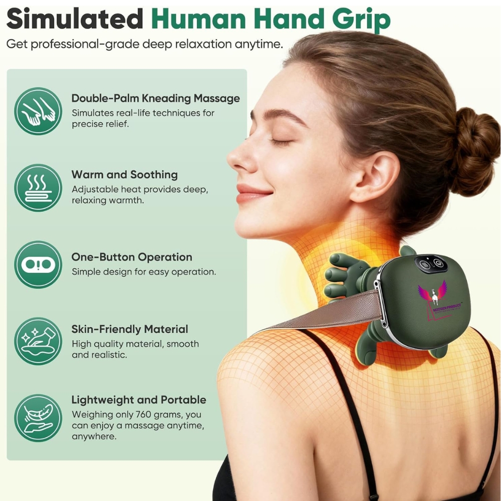 Say goodbye to body stress and muscle pain with the NextGenProduct Bionic Heated Massager. This smart portable massager delivers a deep tissue massage experience with simulated human-hand kneading technology. The built-in heating function improves blood circulation and eases stiffness, making it ideal for neck pain, shoulder tension, lower back discomfort, and everyday fatigue.